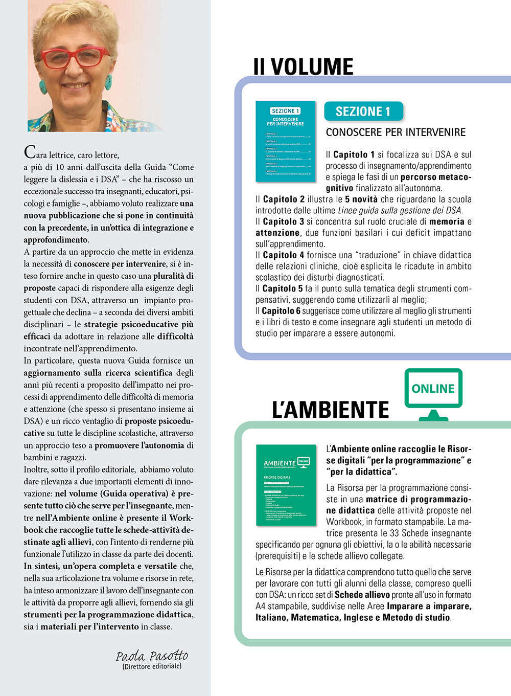 Illustra le Linee Guida sulla gestione dei DSA 2022 e l’impatto sull’apprendimento delle difficoltà emergenti nell’attenzione e nella memoria di lavoro, spiega come tradurre la diagnosi nella pratica didattica, come utilizzare al meglio gli strumenti e i libri di testo e come insegnare agli alunni un metodo di studio per imparare a essere autonomi.SEZIONE 2